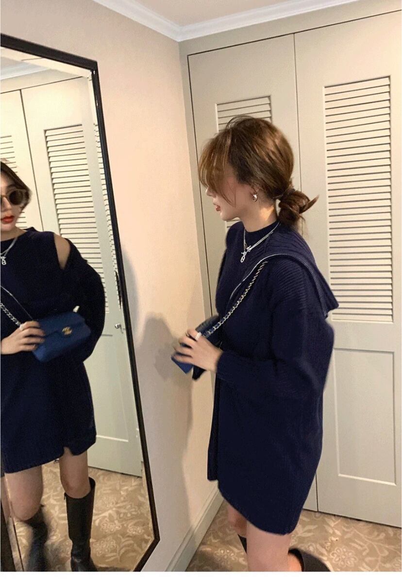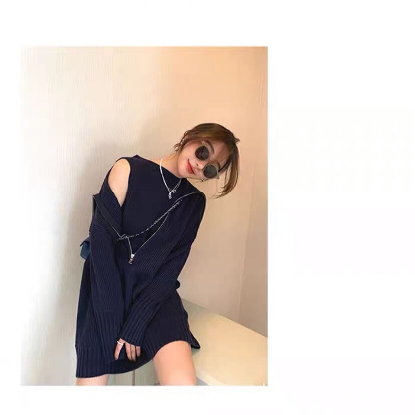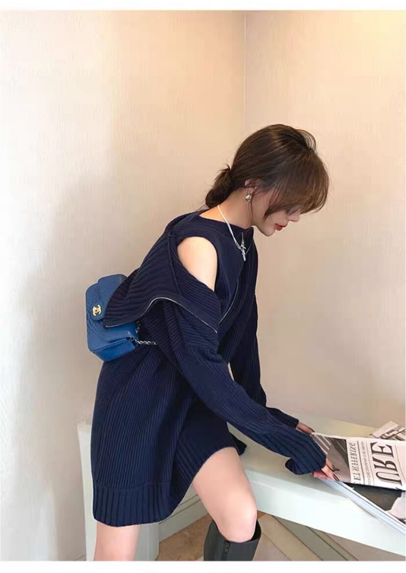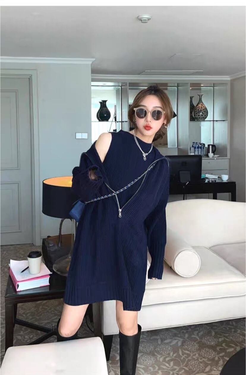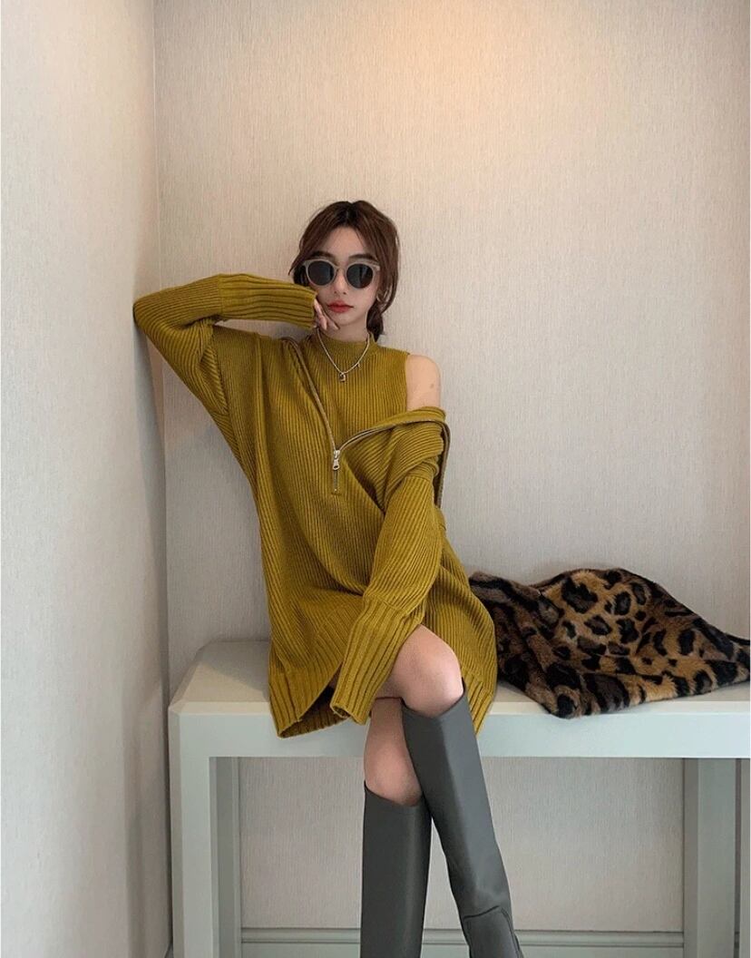 ❤︎フロントジップ ハイネックデザイン リブニットワンピ❤︎